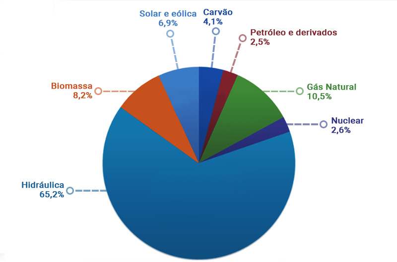 A matriz elétrica brasileira é mais renovável do que a energética, uma vez que grande parte da energia elétrica gerada no Brasil é oriunda de usinas hidrelétricas. A energia eólica está crescendo e contribuindo para que a nossa matriz elétrica mantenha sua maior parte renovável.