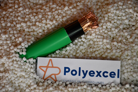 Trata-se de um composto termoplástico de base olefínica de fonte renovável na cor natural, retardante a chama, livre de halogênios e de baixa emissão de fumaça para uso em isolação e cobertura de cabos de energia e telecom.